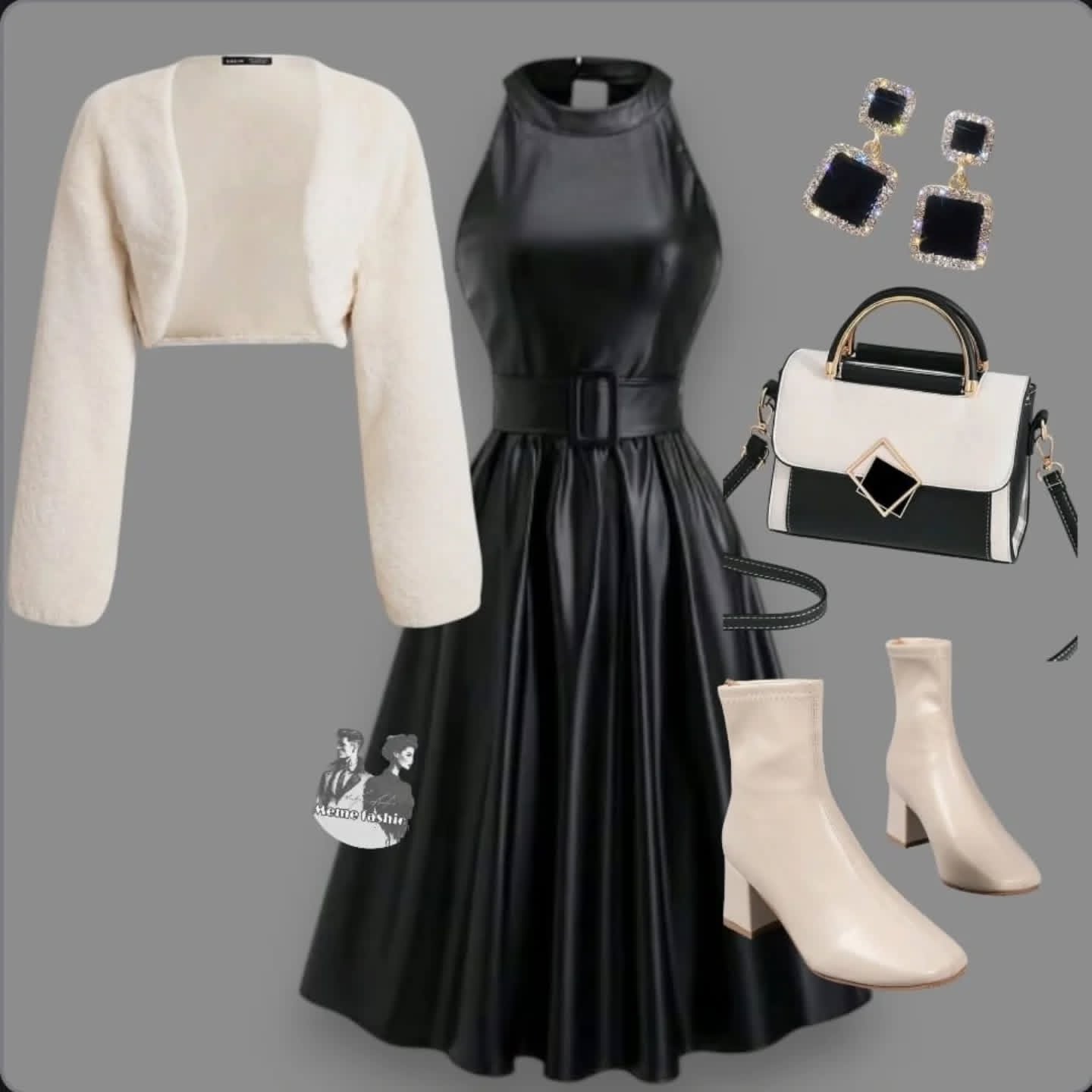 طقم قطعتين فستان جلد وجاكيت